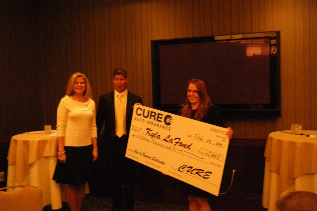 Five finalists were honored at a dinner reception on Thursday February 23rd in Princeton and each received $1,000. LaFond was chosen to receive the $15,000 CURE Auto Insurance “Pay It Forward” Scholarship,