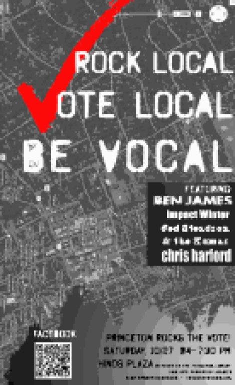 Come join friends and neighbors at a free Princeton Rocks the Vote Concert on Saturday, Oct. 27 from 4 to 7:30 p.m. at Hinds Plaza, next to the Princeton Public Library.
