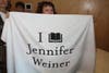 After about 30 minutes of speaking, Jennifer answered questions, gave away canvas boat bags and beach towels to those who wore a vest, and signed books, which where for sale in the back for those who had yet to purchase one. I can call her by her first name, because she asked me to photograph her and the crowd wearing vests with her iPhone.