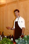 The ever charming Eno Terra Executive Chef Christopher Albrecht was on hand this month, and brought fresh greens from the Farmers' Market. As usual, he lets the daily offerings guide his cooking demo. He found baby spinach, lambs quarter, beet greens, Tuscan kale (a.k.a. lacinato and dinosaur kale), collard greens, nettles, and Swiss chard.