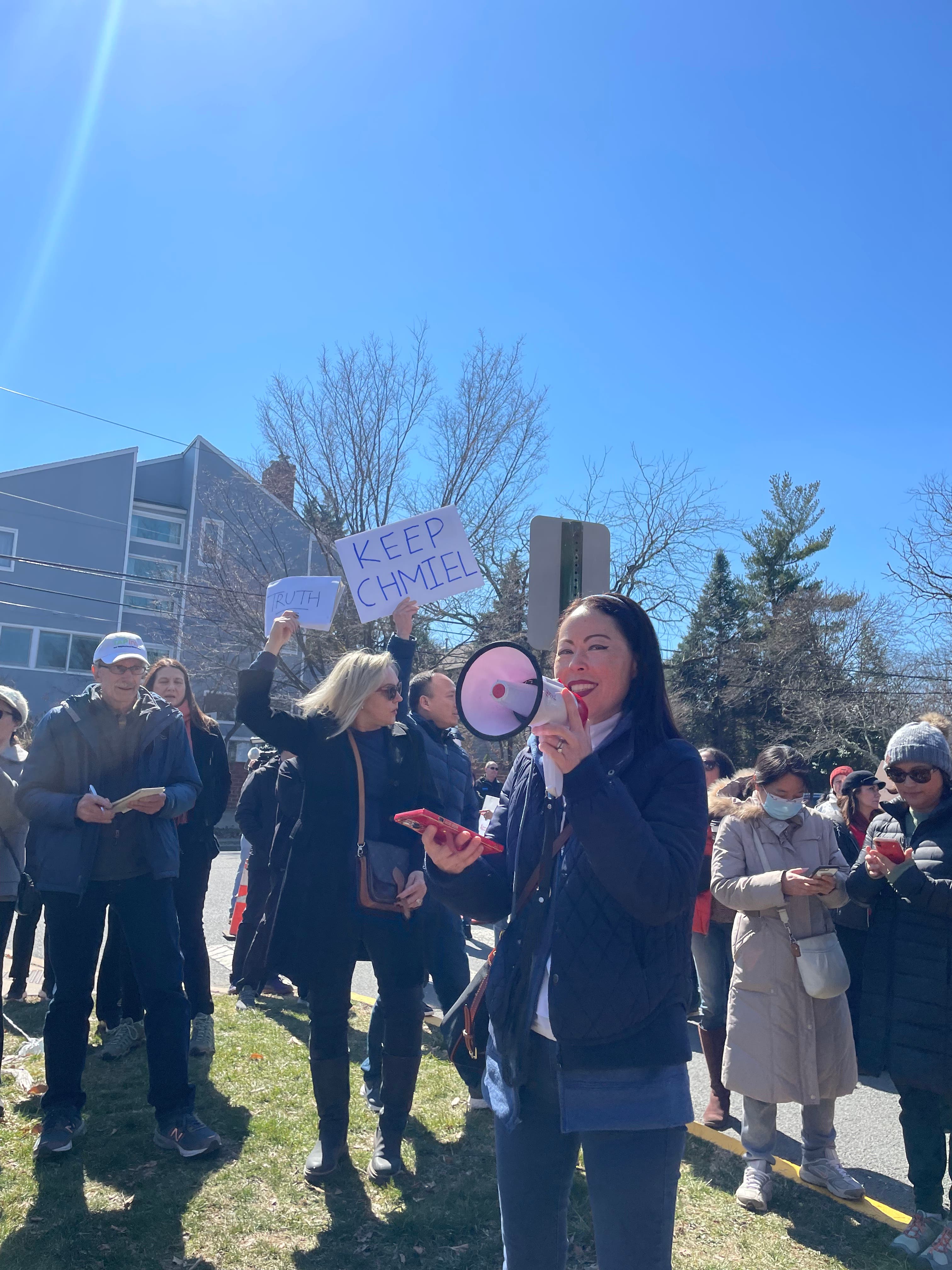 Meanwhile, parents and students held a demonstration outside Princeton High School on Monday afternoon, showing their support for Chmiel.