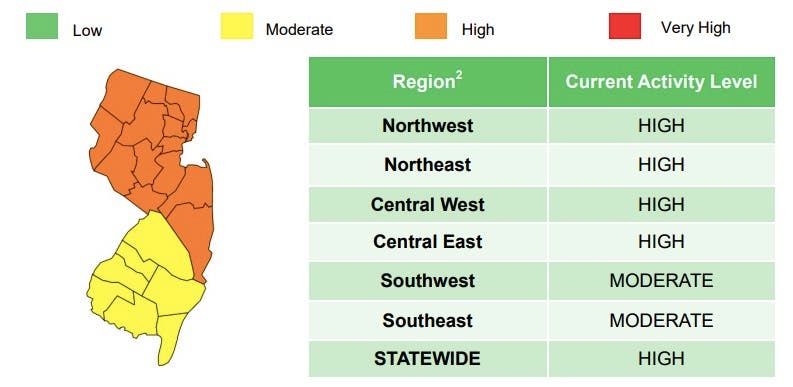 The disease’s impact is reflected in the state Department of Health's most recent "COVID-19 Activity Level Report," which is issued weekly. The most recent report, released Thursday, says Mercer County is in the orange zone.