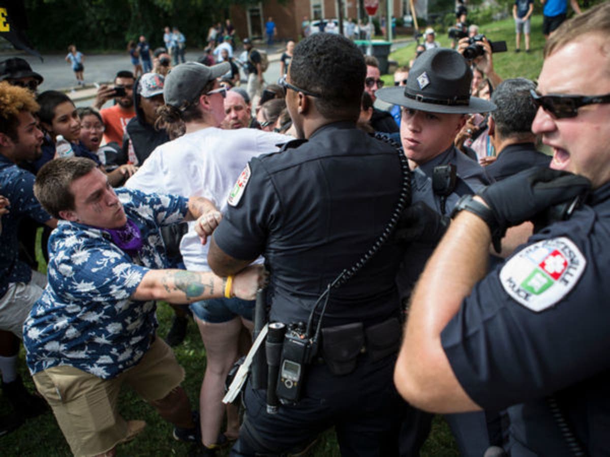 The incident followed a march by hundreds of white nationalists Friday night, holding torches while chanting anti-Semitic slurs.