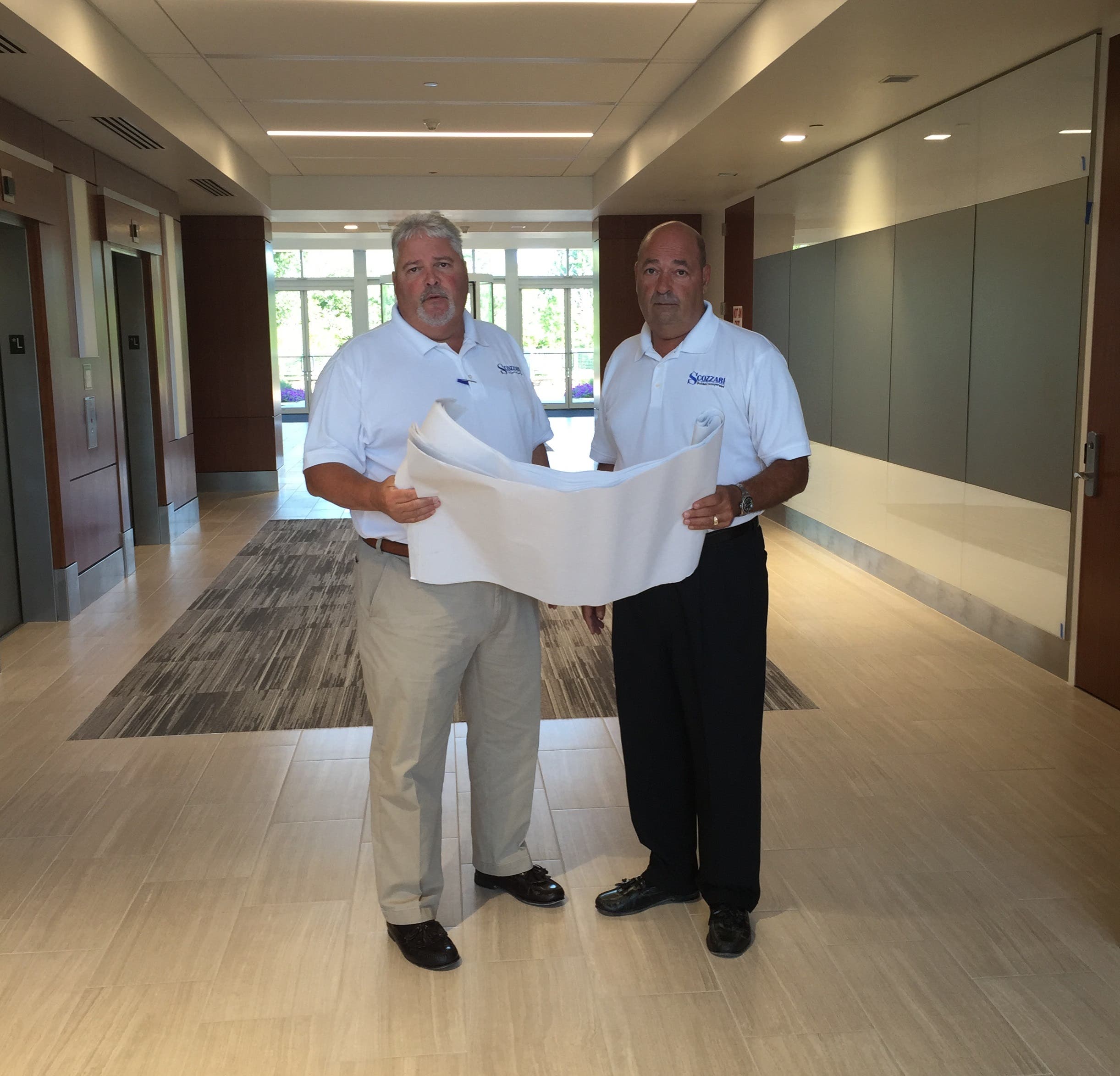 Photo caption: Photo courtesy Scozzari Builders. (Left) Leonard J. Scozzari, president, and (right) Nicholas R. Scozzari, vice president, of Scozzari Builders, Inc. at their project renovating and repurposing a portion of the former Merrill Lynch complex in Hopewell.