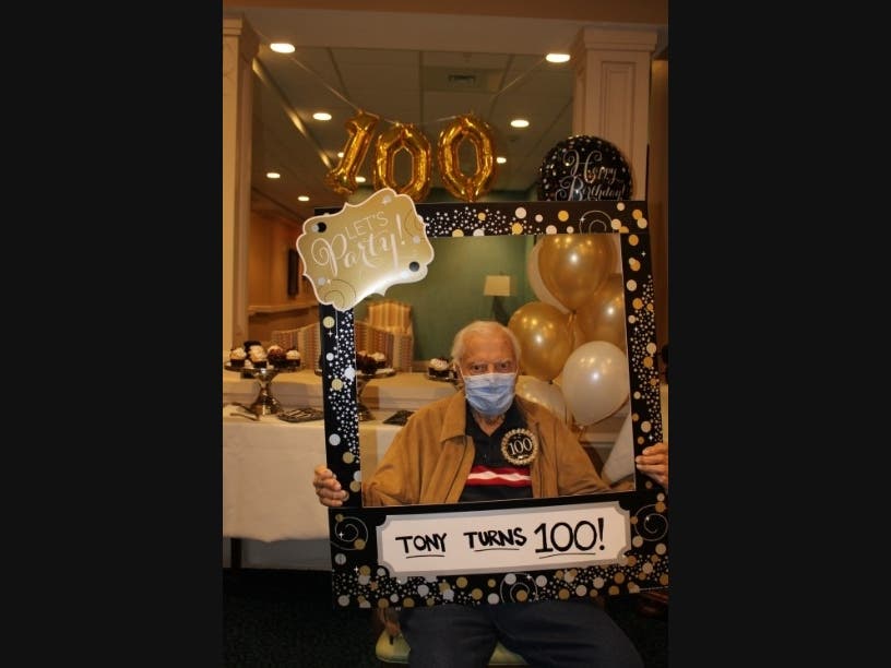 Tony Inchiocca, a resident of The Bristal at Woodcliff Lake celebrated his 100th birthday on Thursday, April 21st. Tony was born in East Harlem, his parents immigrated to the United States from Italy. A graduate of City College, Tony had a successful career as an accountant before retiring in 1986.