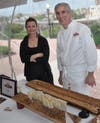 - And now onto one of my favorites of the night: Ancho chili spiced salmon & mango salsa by Pearl at the Oyster Point: A piece of salmon seared in front of you, on a stick with pineapple, marinated with chili, and then covered in mango salsa. Amazing!