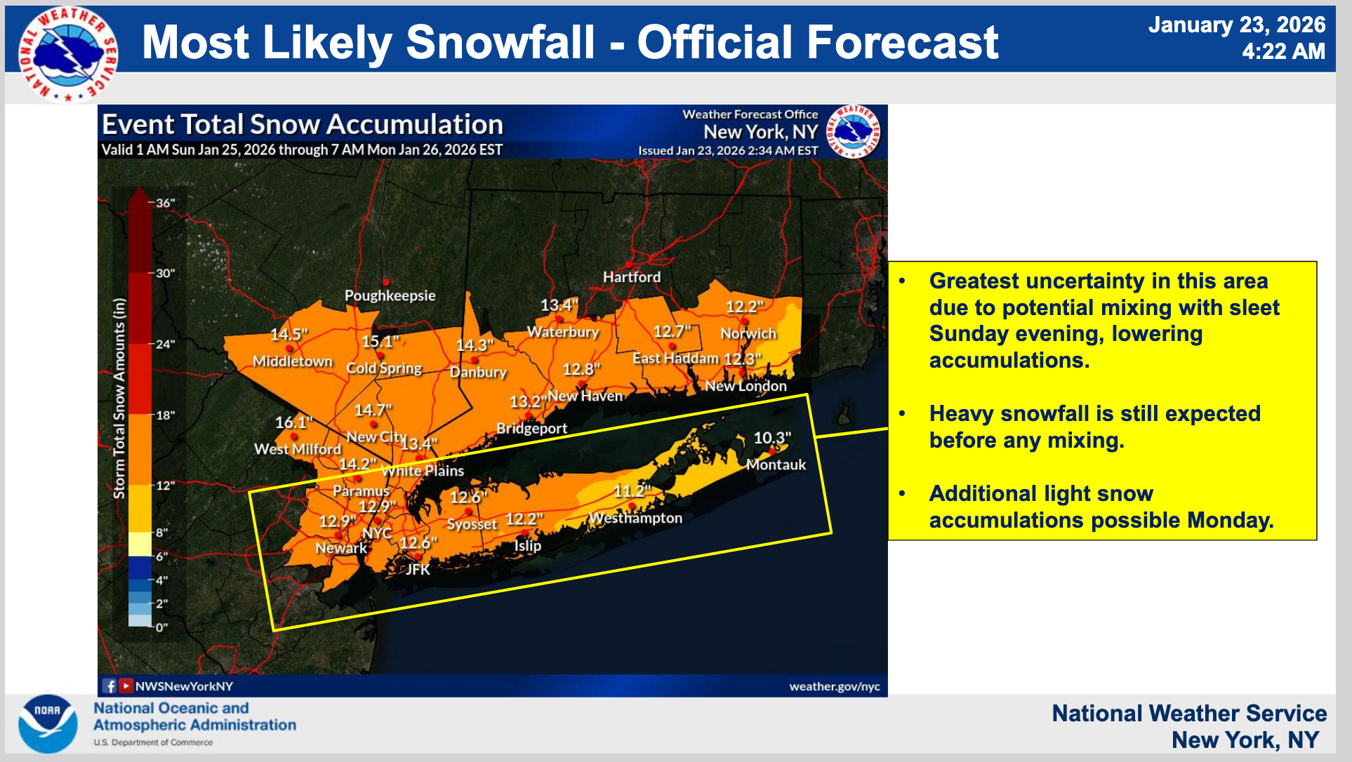 A map issued Friday has these potential totals: