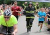 Corcoran, unofficially, set a new world record for running a mile in firefighter gear at the Fred d’Elia Memorial Day Ridgewood Run Monday.