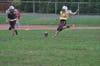 It was another rainy Saturday morning, but it didn't dampen the spirits of the largest fan turnout this season—over 102 people. Varsity football player Rich Biagi provided a PA system, affording live play announcements and halftime music. The JV cheerleading squad was out in force and brightened the day.