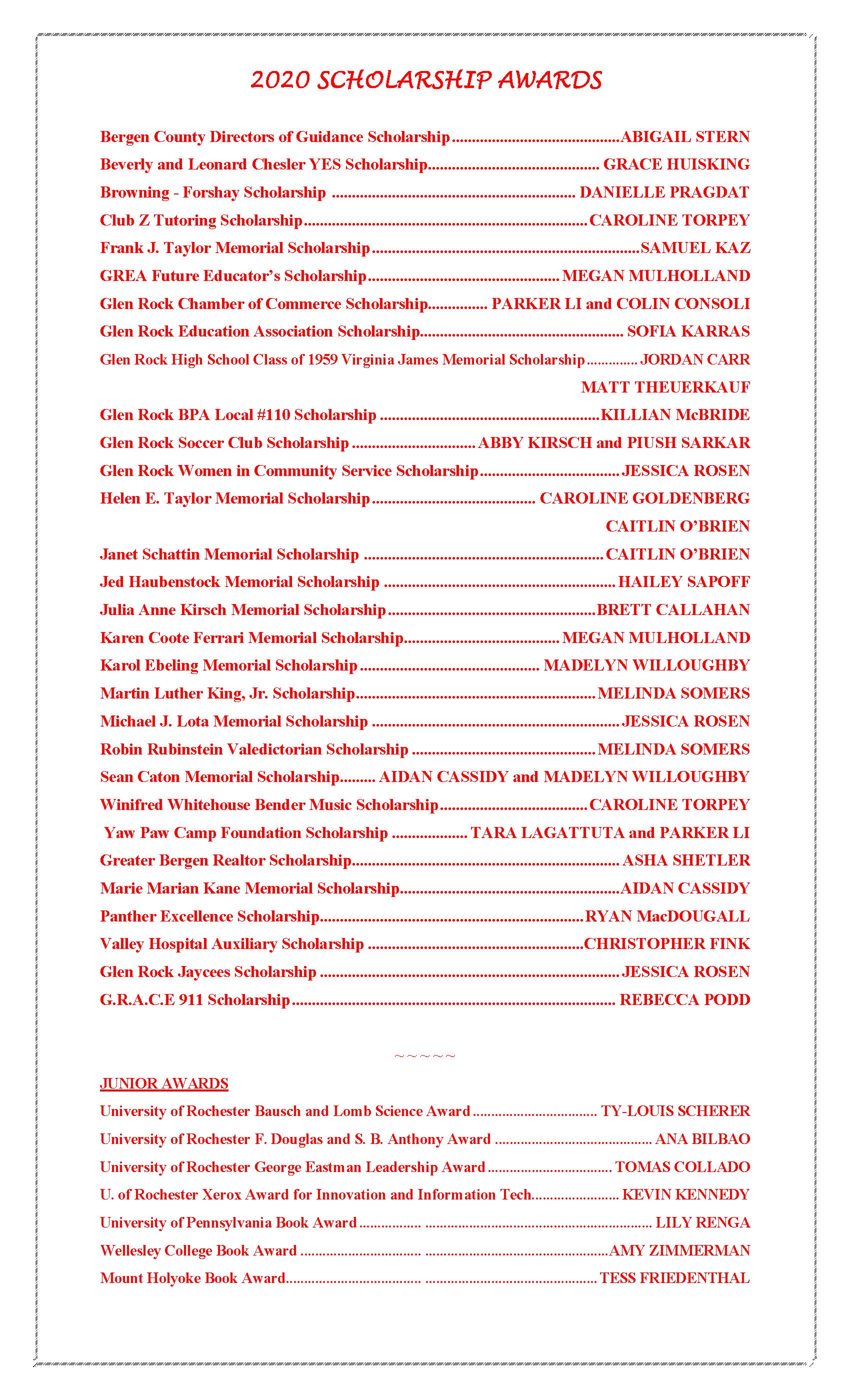 Below are the list of winners from Glen Rock: