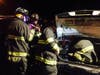 (Pictured: Glen Rock firefighters investigate a fire that broke out in a police officer’s patrol car Monday night.)