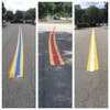 Additionally, blue, red, and white lines were painted in the middle of Harding Plaza in front of the borough hall in honor of the police and fire departments and the borough's ambulance corps.