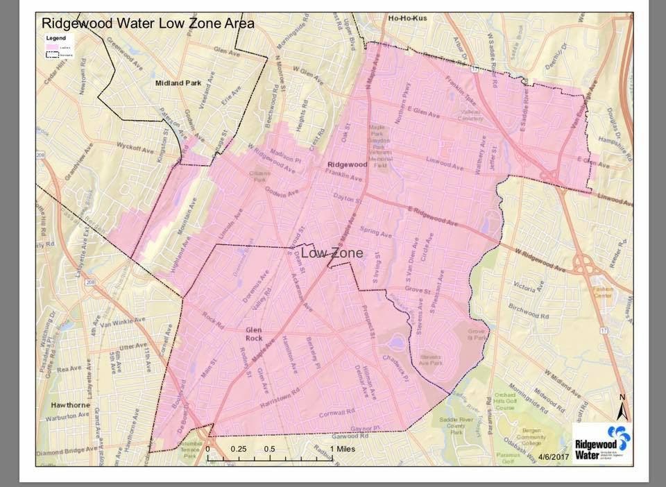 A map of the area the low pressure zone covers, which is where the sample containing E.coli was found. — Courtesy of Ridgewood Water