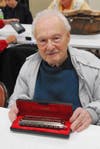 The meeting gave Redler a chance to present a certificate of appreciation to member Bob Beck, who currently runs a course about how to read music. It also provided time for an open mic event: Grova, playing the lead, and Caltabellotta, who puffed on a 24-inch chord harmonica, began the festivities for the night with “Lady of Spain.”