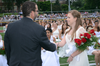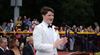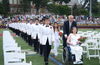 The boys, decked out in white suits with black pants and red boutonnieres, and girls, each carrying a bouquet of red roses, listened to their colleagues, administrators, and teachers impart advice to them regarding transitioning into adulthood.
