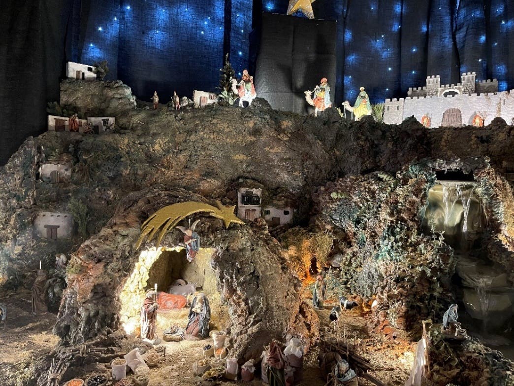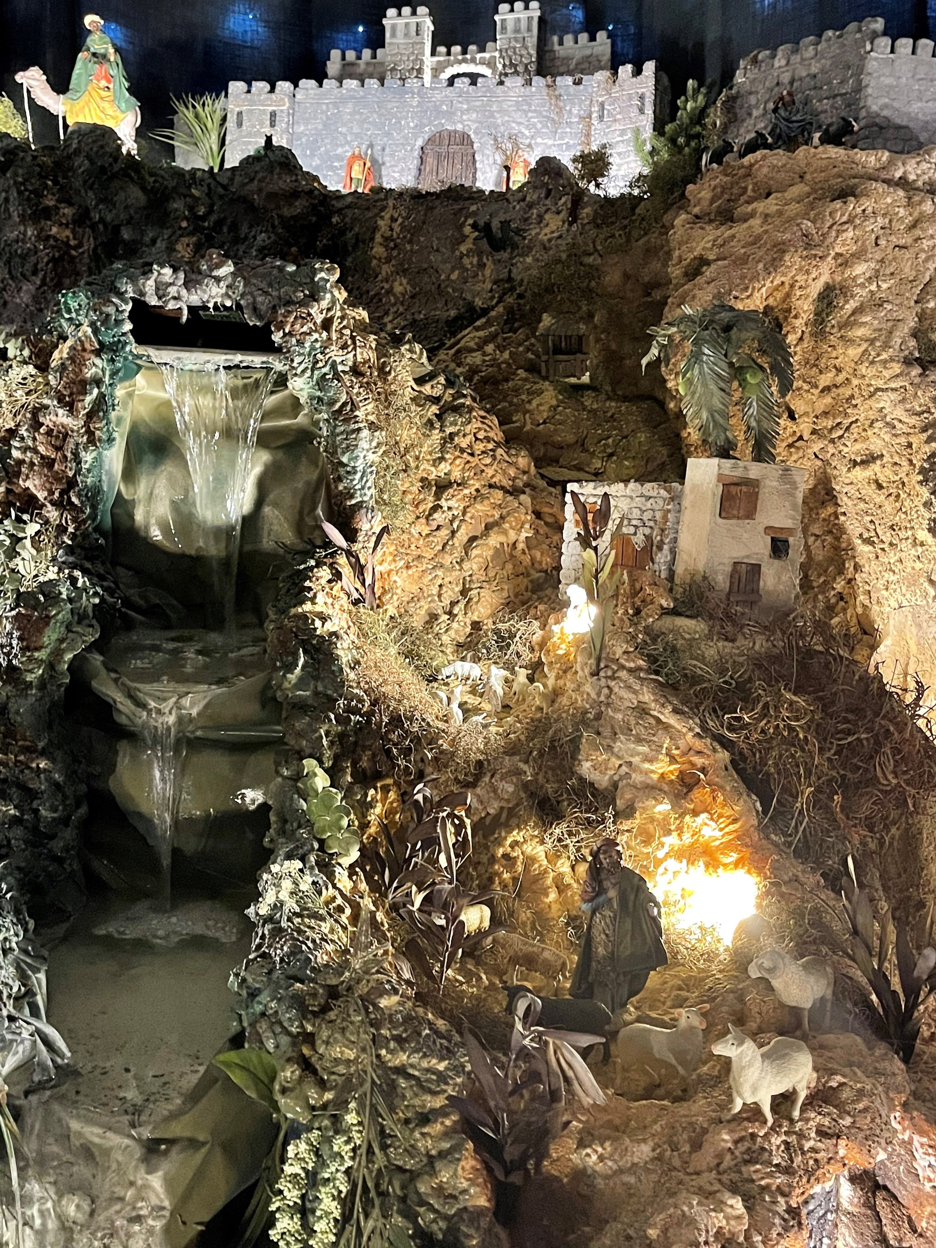 "Almost entirely handcrafted, the crèche depicts the whole story of Christmas — from the angel Gabriel’s visit to Mary, through Joseph, Mary, and the baby Jesus’ departure for Egypt. Visitors can spend hours admiring the scene’s many details, including a running waterfall and live goldfish."