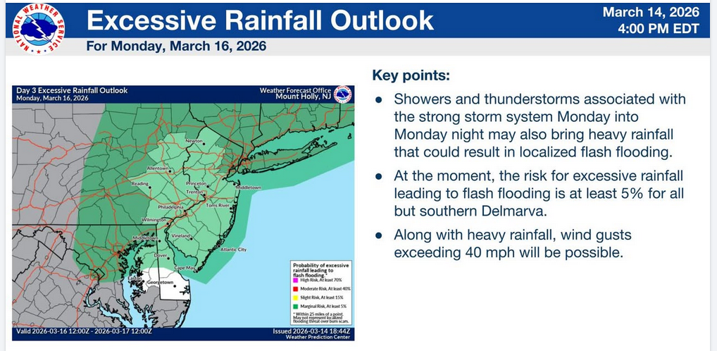 Excessive rainfall, possible flash floods, even snow showers are in the forecast as a storm bears down on Bergen County Sunday into Monday.