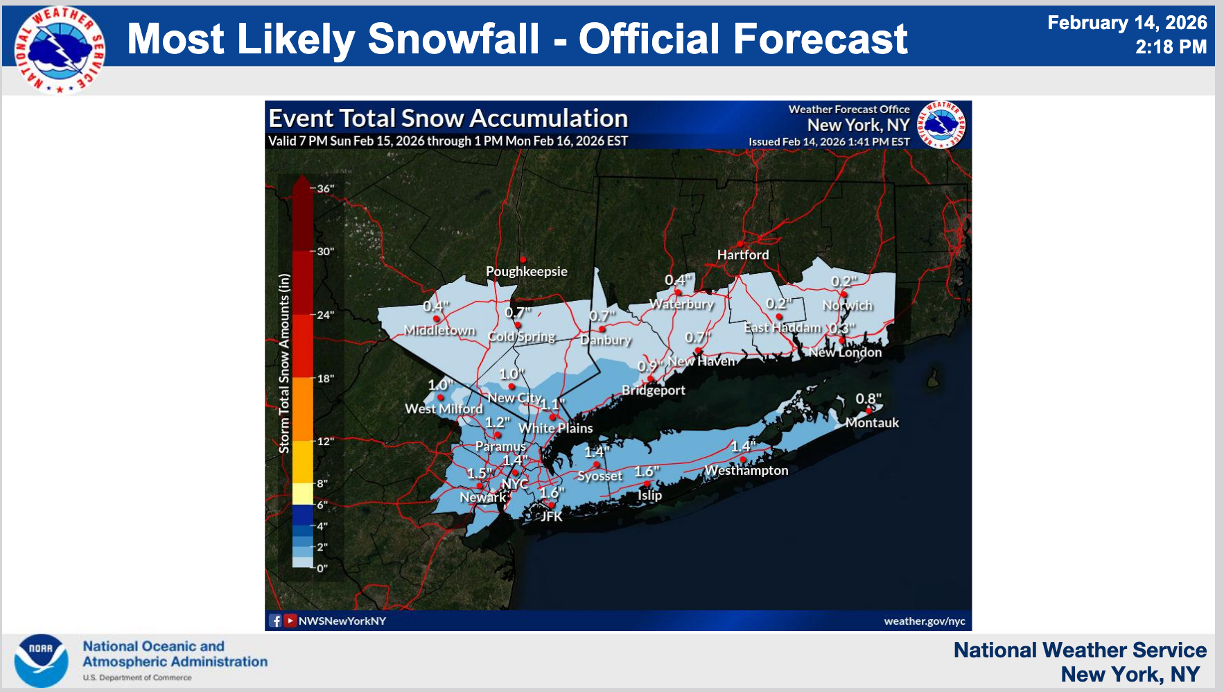 From Sunday night through Presidents' Day morning, at least an inch is expected, making for slippery conditions. See the new map: