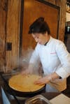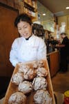 The atmospheric café opened on March 14, employing eight people who work in harmony to make this new pastry shop the most inviting place for breakfast, lunch and dinner. Sook, a graduate of the French Culinary School in SoHo, perfected her pastry making at the noted Payard Patisserie in NYC, and runs the place with charm. Lorenzo, her chef, shows his deftness and pride in crafting the croissants through the big glass window at the back of the shop. It is a “cool” room. The stone counter, on top of the refrigerators, keeps the dough cold, as needed, to produce “just right” croissants.
