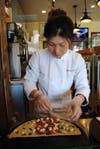 “Crepes,” Sook says, “are better than sandwiches.” Two crepe making burners were her inspiration. The menu lists savory crepes with mushroom, goat cheese, tomato and basil, or smoked salmon, cream cheese, spinach and capers, among other combinations. Dessert crepes are filled with chocolate, apple cinnamon, or cream cheese and topped with fruit. Savory, sweet and omelette crepes offer a wide variety of choices for day-long, wonderfully satisfying dining.