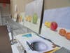 Upstairs in a great room, where natural light pours in through sky lights, are rows of butcher block tables marked by the errant brush strokes of artists in training. The neutral walls are a rotating gallery of works by children and adults in the style of Picasso and Cézanne.