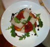 Roasted Jersey Peach: fresh goat’s cheese, crispy Serrano ham, balsamic reduction