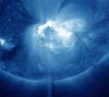A giant solar flare erupted from a huge sunspot Thursday and scientists believe the effects may be felt on Earth today, causing auroras — or Northern Lights — at lower than usual altitudes.