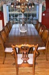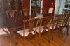 MAITLAND SMITH double pedestal Dining room table 72 inches long with two 20 inch leaves. With 10 hand carved chairs. Plus custom table top pads. Like New! $2900.00 for set.
