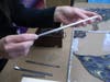 There are two methods of creating new stained glass frames, one using strips of lead which is bent into shape around the pieces of glass, the other using a copper foil which is wrapped carefully around the pieces. Those pieces are then set into place and soldered together. The soldered lines can appear inconsistent due to the nature of working with metal liquefied by heat.