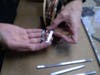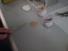 Care needs to be taken in the application process because inhaling the glass dust is dangerous and can spur on Silicosis (a respiratory disease caused by breathing in silica (glass). Once applied, the glass is fired in a kiln much in the same way pottery glazing needs to be fired.