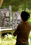A centerpiece of the window is a portion of glass with a painting of a tent. To the right, the portion is intact and only requires a careful cleaning. The left portion is broken into pieces. Grady has decided the damage is too severe for repair, and if it was to be done, the fixes would be distracting. “I’ve got to repaint that. I’ll do this whole piece. It will look like (the original piece) but it will be new.”