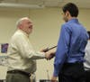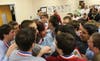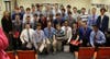 The boys’ swim team’s finest season on record reached perhaps its final conclusion Thursday. The Scotch Plains-Fanwood Board of Education convened a special ceremony to honor the team Thursday night, which clinched its first state title in history with a triumphant 90-80 win over Princeton on Feb. 27. The team and its coaches, Judy Sharkey and Jess Hulnik, received accolades from Board President Trip Whitehouse, Superintendent Margaret Hayes, Scotch Plains-Fanwood High School principal David Heisey and athletic director Ryan Miller. The swimmers then filed to the front of the room to formally receive certificates and medals, handshakes from board members and officials, and a resounding round of applause from the parents and family members who filled the gallery.
