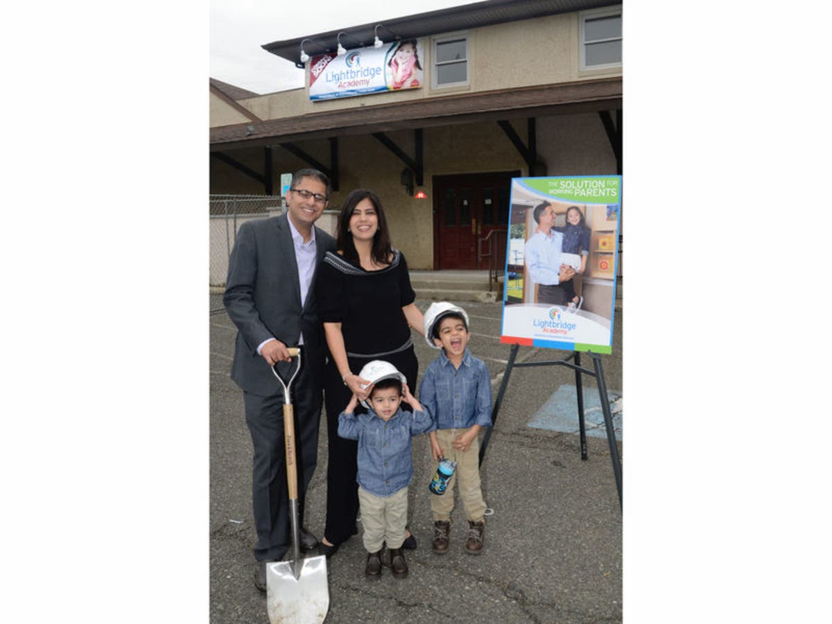 (Image via No Limit Agency: Groundbreaking of the Lightbridge Academy in Fanwood with owners Bhavna and Vishal Ajwani and their children Krish and Rishaan.)