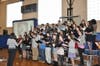 Local neighbors, family, friends, girl scout troops, students, local charities and more listened to remarks by local officials and heard three musical numbers from the Scotch Plains Fanwood High School Choir. Hearts were touched by footage of Dr. King's inspiring words, followed by the singing of "We Shall Overcome," lead by Michael Goldstein. After the ceremony, volunteers headed off to activities at the JCC, the , , and more, energized and enthusistic to give back.