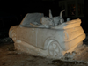 Ironically, snow sculpting is actually a fairly warm weather activity, when the snow is soft, wet, and packable. The tools Robert uses are a wheelbarrow (which helps with carrying the snow and packing it into a large starter pile), a snow shovel, a straight edge shovel to shave large sections, a tree branch pruning saw for cutting, a straightedge board, a 6 foot measuring stick, a drawing for planning and for basic proportions, and thick rubber gloves for all the hand shaping. After building the pile nice and high, he works on the design from top down, reusing the shavings from the upper parts to help shape the lower parts. He is completely self-taught. His recipe for success is having the right weather, proportional measures, and lots of time, as most of his sculptures take two days – one day of hard labor for making the pile, and the next day for the actual design.