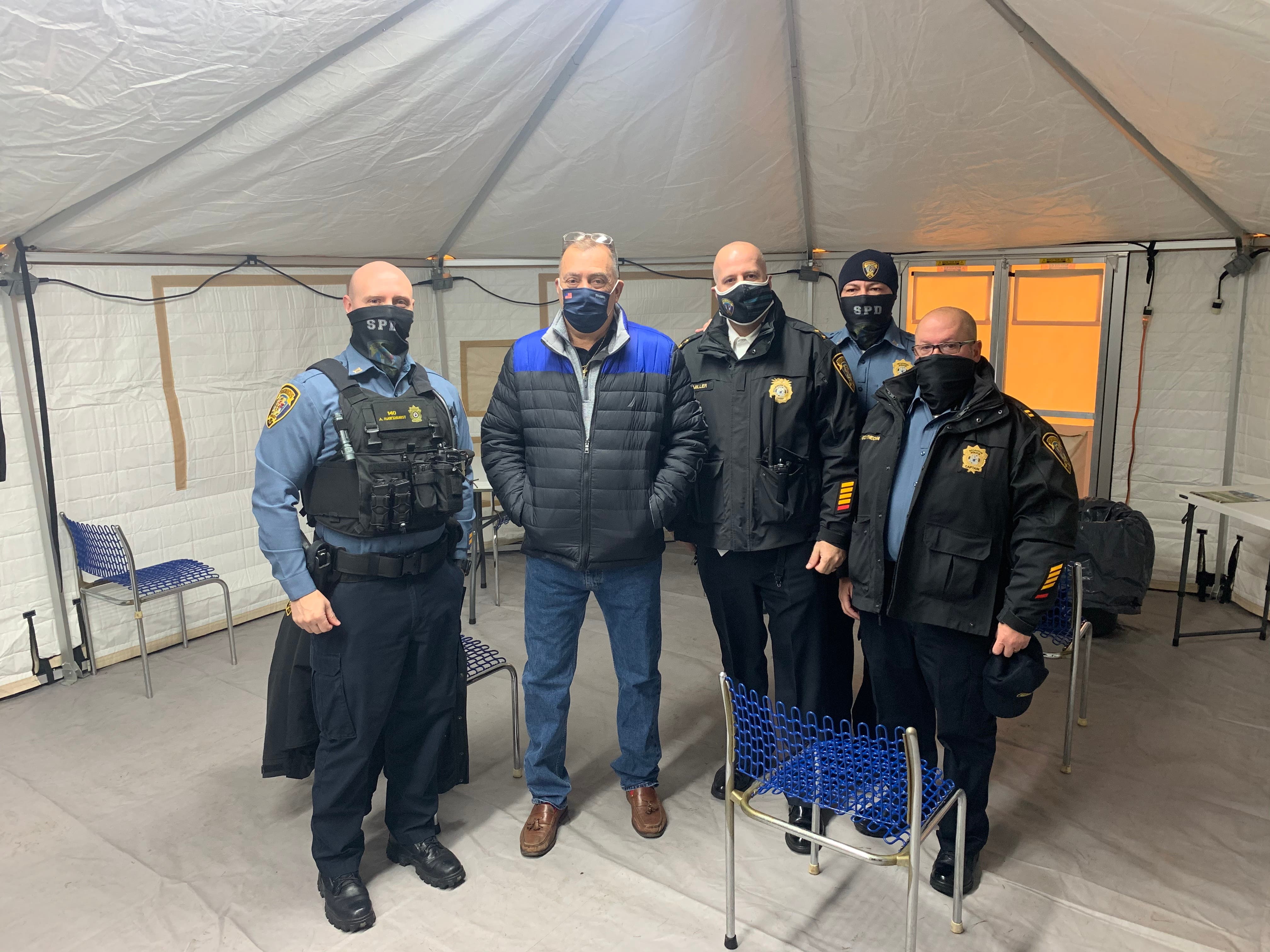 The Secaucus POD will use the Moderna vaccine, which requires two injections, the second one 28 days after the first shot. So Chief Miller and everyone vaccinated today will have to return in 28 days for their second shot. That vaccine does not have to be kept quite as cold as the Pfizer vaccine; it is stored in coolers inside the trailer, which must be kept at -13 to five degrees Fahrenheit.