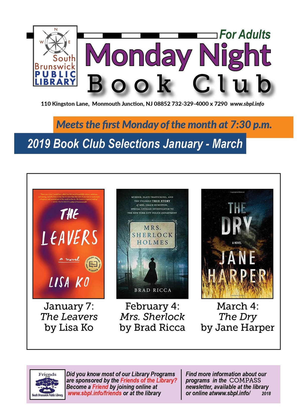 1. Resolve to read more in the new year with the South Brunswick public library! There are four book clubs for adults that meet regularly at the South Brunswick Public Library, 110 Kingston Lane, Monmouth Junction, NJ.