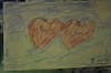 In some pictures, there are two hearts that have stems like apples. Inside the touching hearts is written “Joan” and “Paul.”