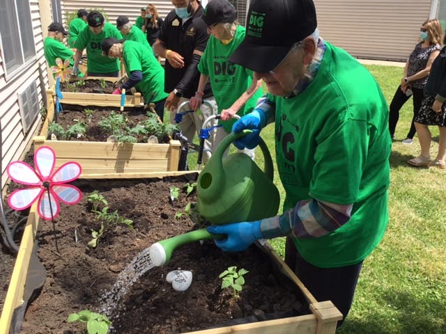 Residents who are members of the “Can You Dig It” garden club will care for the garden after planting.