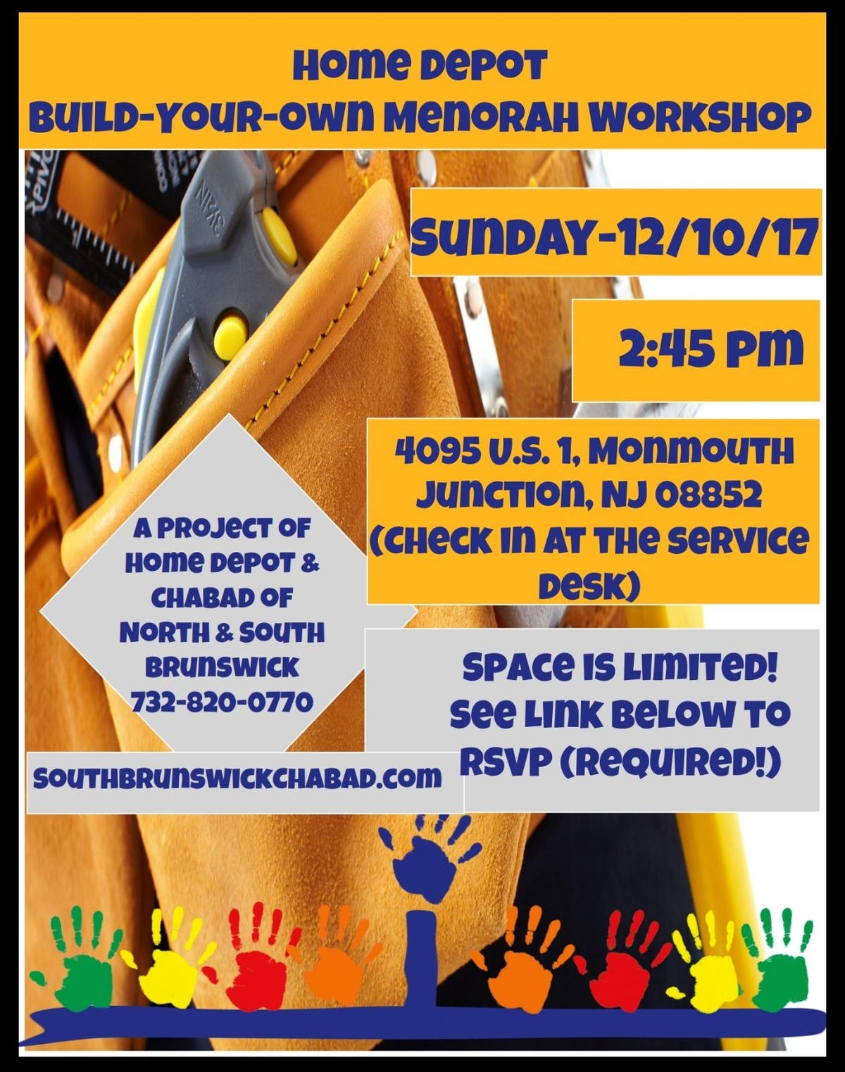 SOUTH BRUNSWICK, NJ — Next Sunday, Dec. 10 come to the South Brunswick Home Depot for a build-your-own-menorah event.