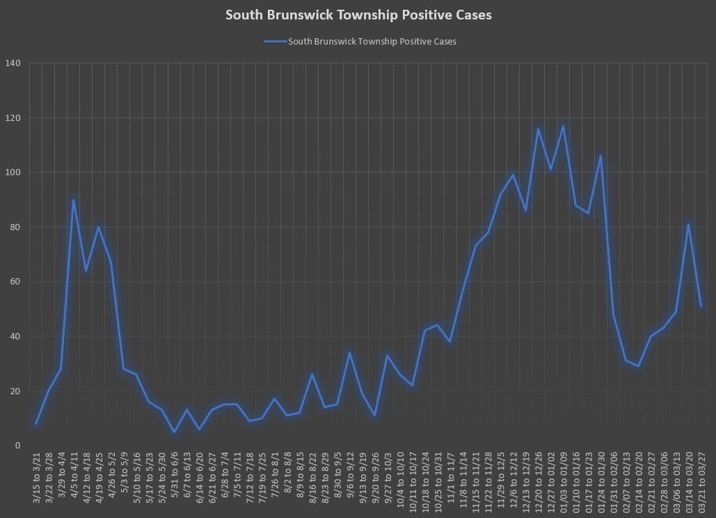 SOUTH BRUNSWICK, NJ — The South Brunswick Office of Emergency Management (OEM) on Monday reported 51 residents tested positive for COVID-19 last week.