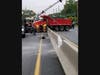 According to the police, a dump truck crashed into the concrete center divider. Crews are working to clear the crash.