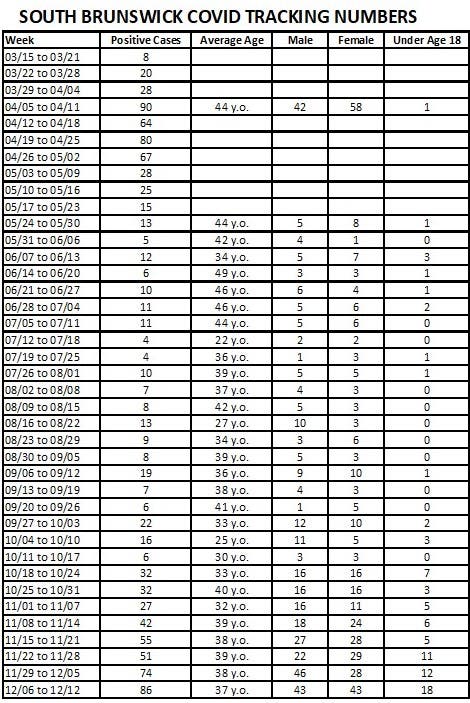 Anticipating this increase, South Brunswick had closed down public buildings and offices back in November. The school district went virtual and most town business was conducted virtually.
