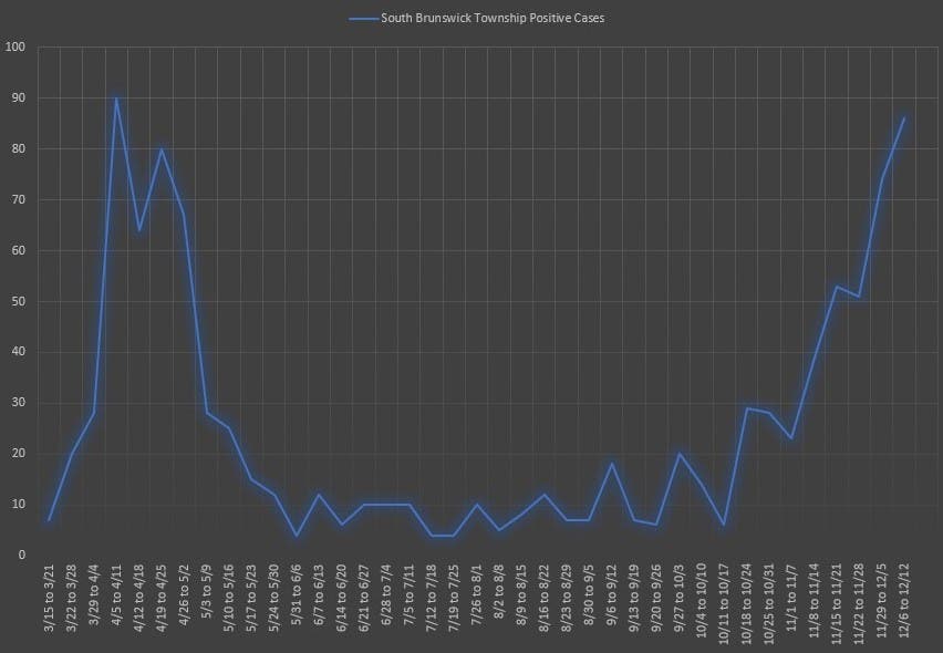 On Monday, South Brunswick reported 86 new weekly coronavirus cases – their second highest since the pandemic began.