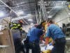 EMTs and paramedics stabilized the woman, while firefighters worked to free her arm. Firefighters first secured the power, then used hand tools to disassemble the section of the machine where the woman's arm was trapped. After disabling the rotating bar, firefighters used several different powered cutters to remove the bar from the machine to free the worker.