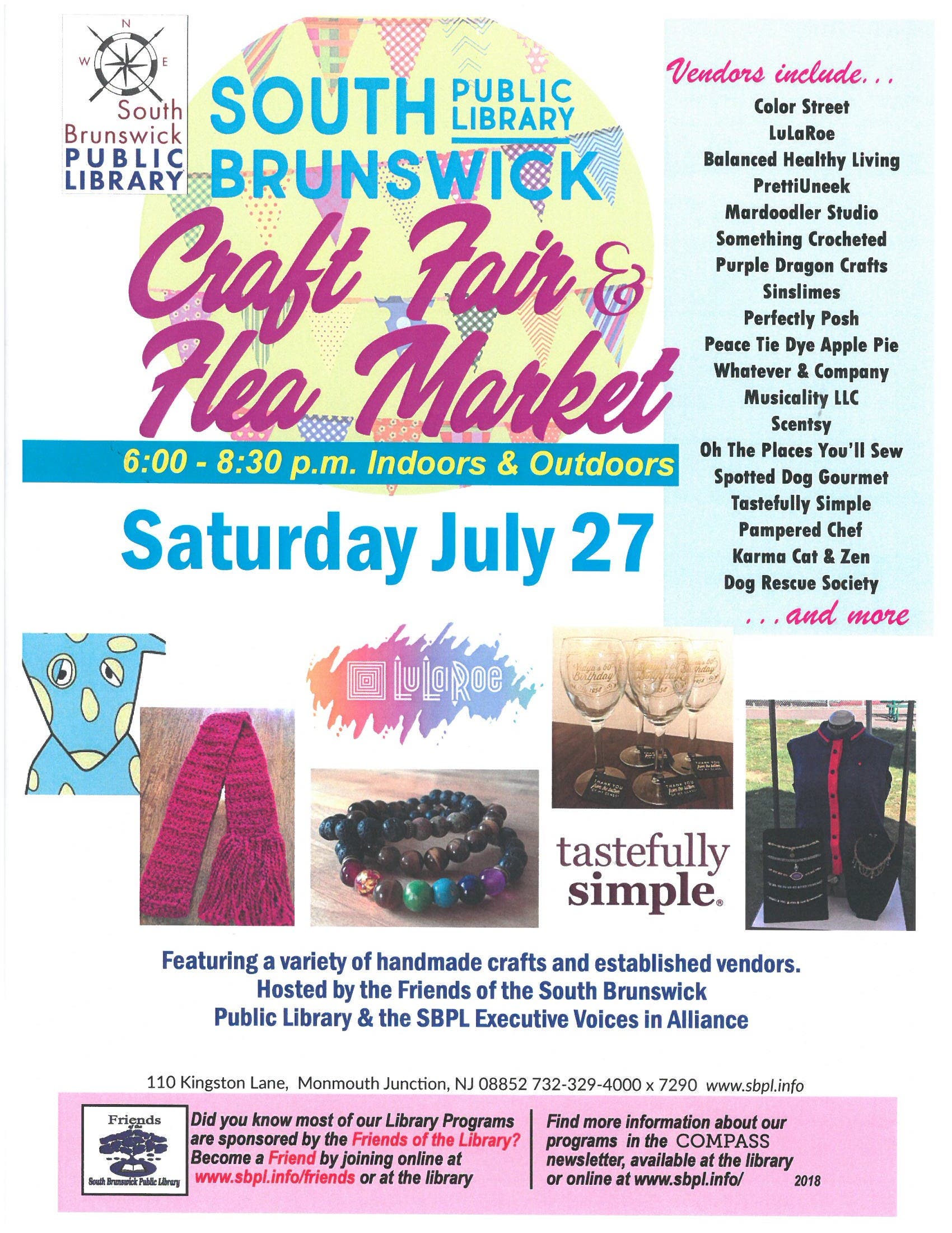 SOUTH BRUNSWICK, NJ — All are invited to check out the craft fair and flea market this Saturday, July 27 at the South Brunswick Public Library.
