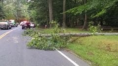 Gusty winds are already causing problems in South Brunswick, which is under a Severe Thunderstorm Watch. They caused the tree to fall At 2:45 p.m. A utility pole fell across Davidson Mill Road about 15 minutes later. That road is closed at Riva Avenue to Fresh Ponds Road, and is not expected to reopen until 7 p.m.