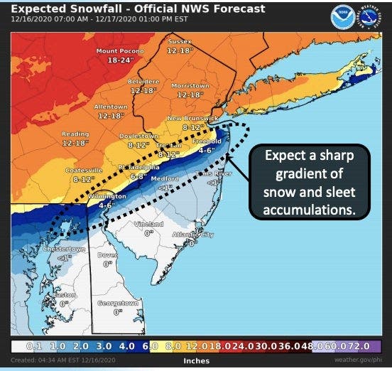 AccuWeather warned of major disruptions to travel and even travel shutdowns, as well as shipping delays, school closings and power outages from this "blockbuster storm," – even though a number of New Jersey school districts have said they'll opt to go remote instead of closing.