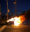 When officers Bafti Salihi and George Morgan arrived, they found a 2016 black Audi A3 fully engulfed in flames. Nobody was inside the car. Photos of the burning car are above, from South Brunswick police.