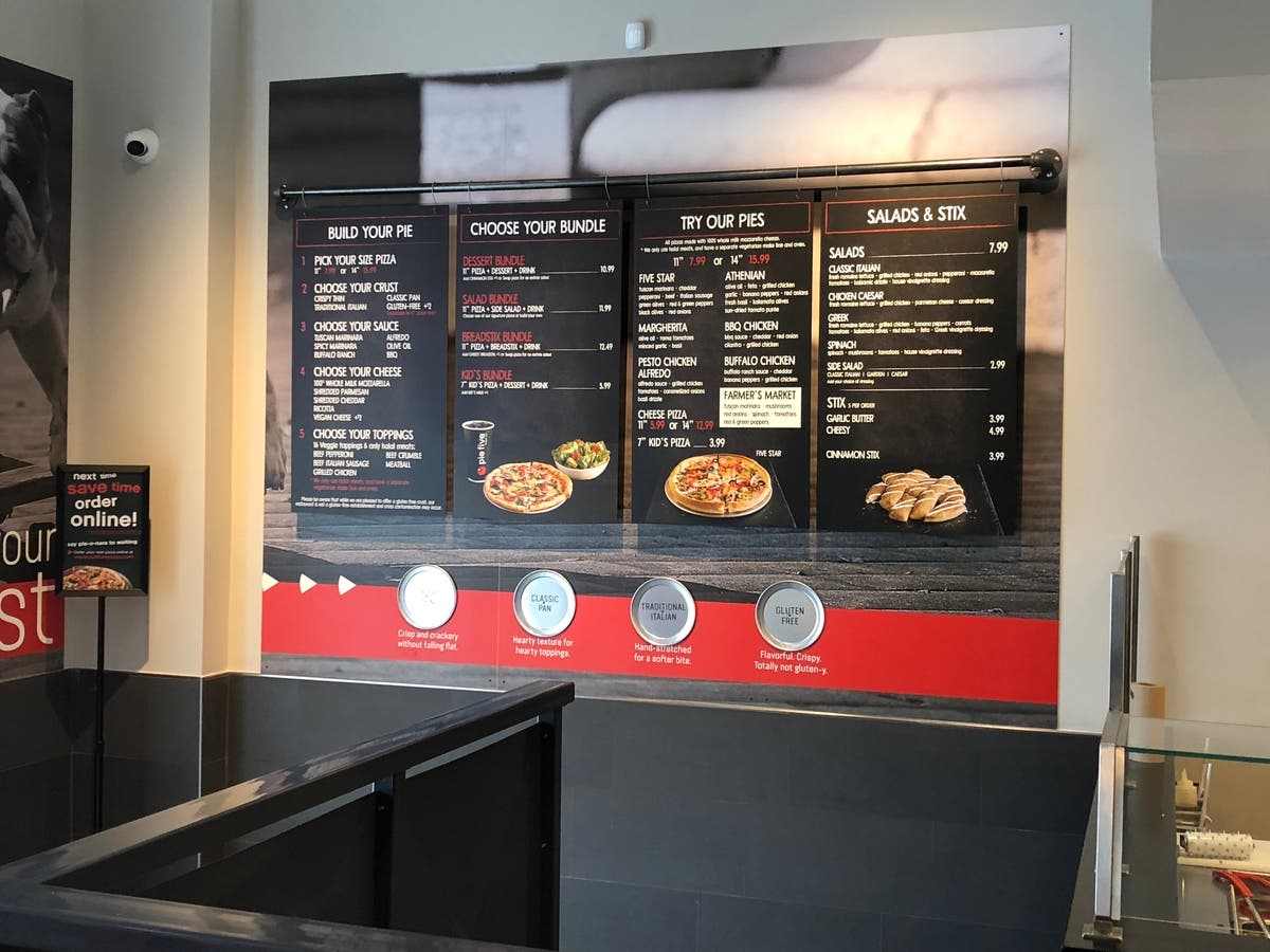 Open every day from 11 a.m. to 10 p.m., Pie Five says they want to target busy families and active professionals looking for a fast and delicious meal handcrafted from fresh, hand-cut veggies and artisan toppings. Pie Five offers Halal meat and will have a separate line, oven and cutting station for vegetarians.